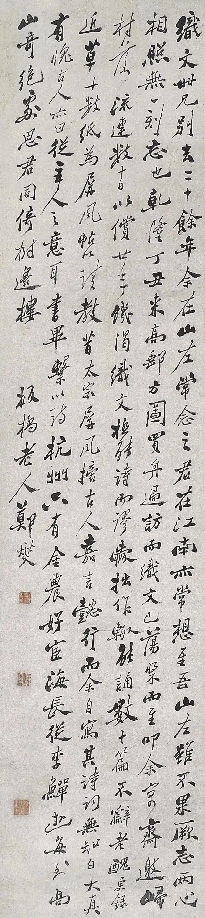 由书法内容可知,乾隆丁丑年,郑燮与阔别二十余年的友人织文在高邮相会,流连之余,作行书以志其谊。