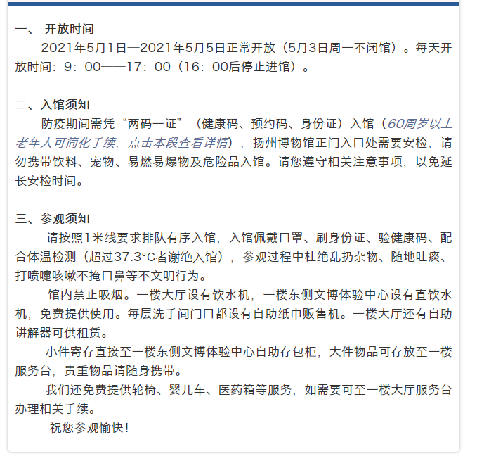 扬州博物馆2021年劳动节假期开放公告